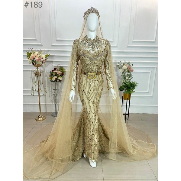 Baju Pengantin Warna Maroon Gold / Jual Gaun Pengantin Barbie Rose Gold Modern Wedding Dress Muslimah Jakarta Barat Tia Soflen Tokopedia